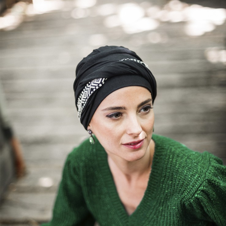 Turbante Oncológico Confort Ikat Negro – Carebell Headwear