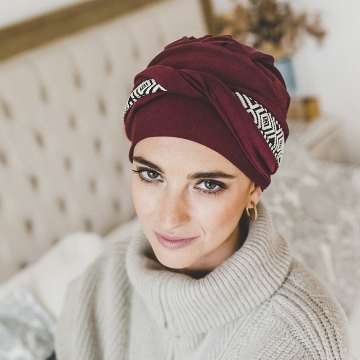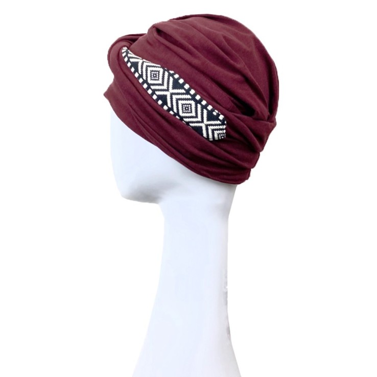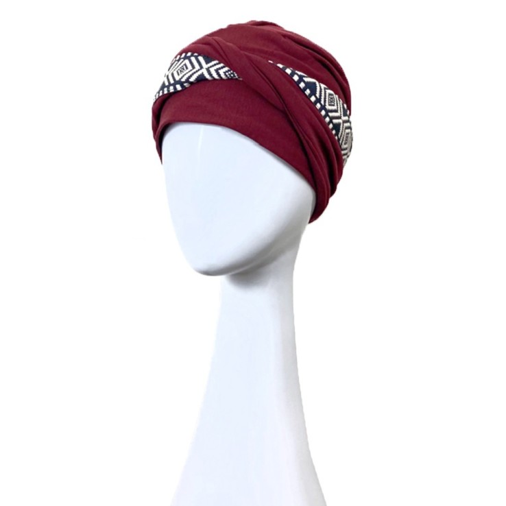 Turbante Oncológico Confort Ikat Burdeos – Carebell Headwear