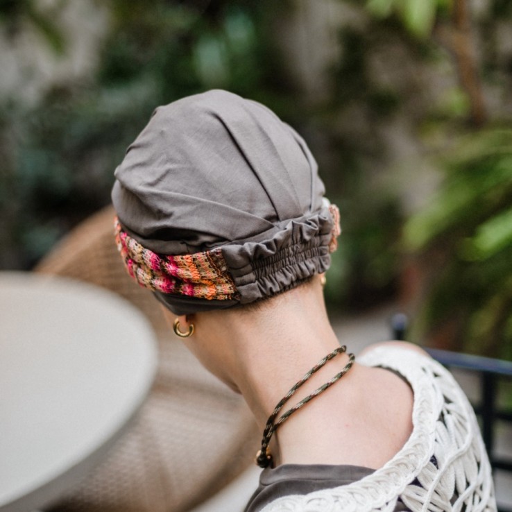 Diseñado para mujeres que atraviesan procesos de caída del cabello por quimioterapia, radioterapia o alopecia, este turbante ofrece protección integral sin generar presión ni fricción.