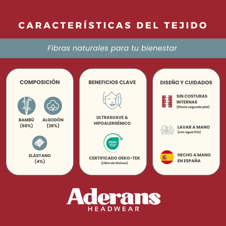 Fabricado por Aderans Headwear, especialistas en soluciones capilares oncológicas