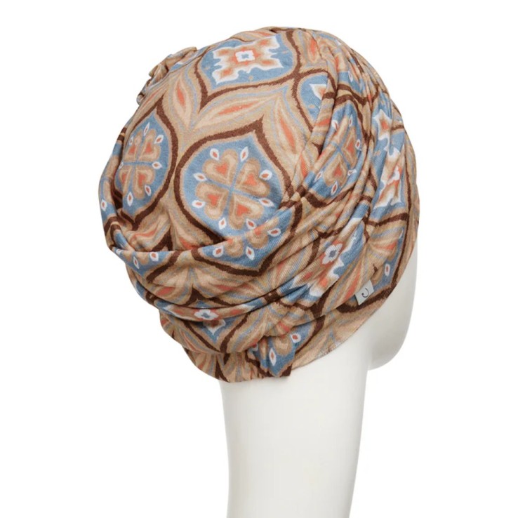 El turbante oncológico Lotus Touch of Gold de Christine Headwear está diseñado para ofrecer comodidad, seguridad y estilo a mujeres con pérdida de cabello.