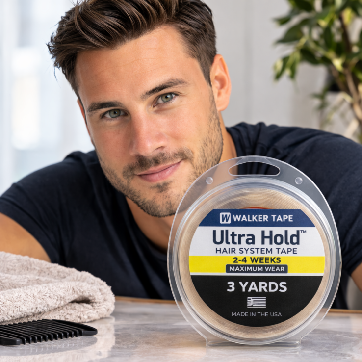 La cinta adhesiva Ultra Hold de Walker Tape es una de las cintas más fuertes, duraderas y adhesivas del sector profesional para la fijación de prótesis capilares, sistemas capilares y pelucas.