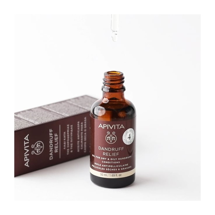 Aceite Apivita anticaspa para caspa seca, grasa, picor y descamación.