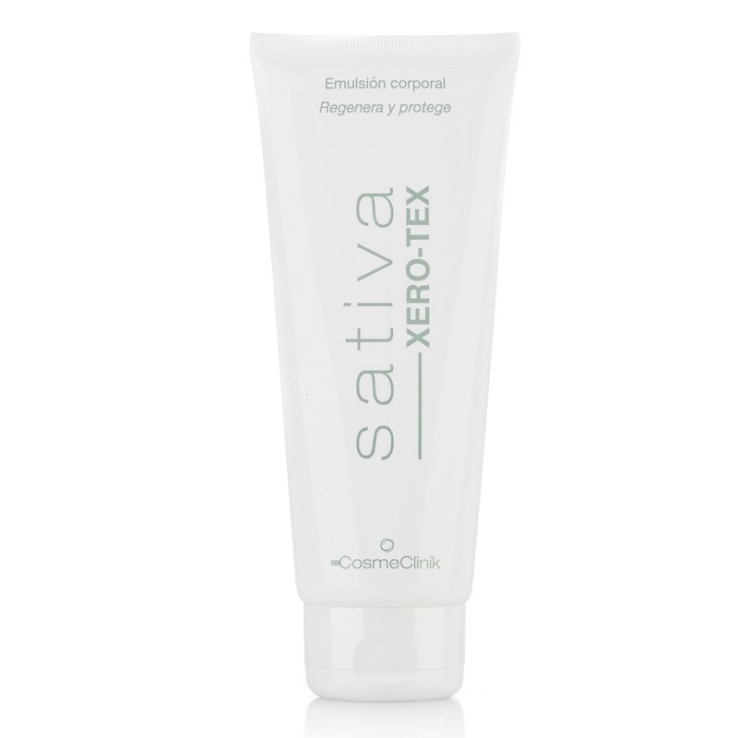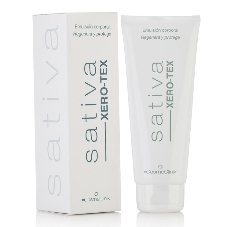 Sativa Xero-Tex es una emulsión corporal relipidizante intensiva formulada para pieles con sequedad extrema, xerosis o sensibilización cutánea, como puede ocurrir