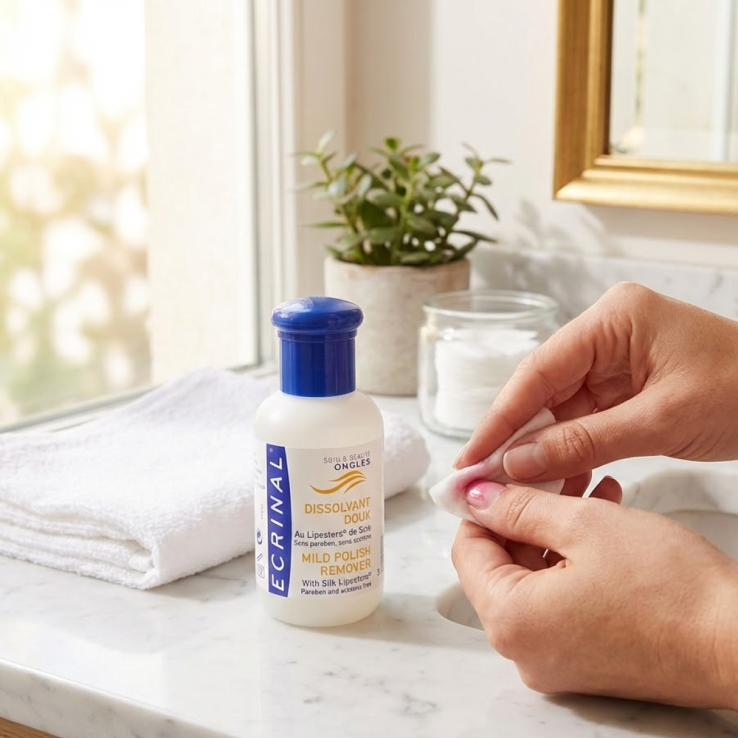 El Quitaesmalte suave ECRINAL® para eliminar el esmalte o barniz, respetando la uña.