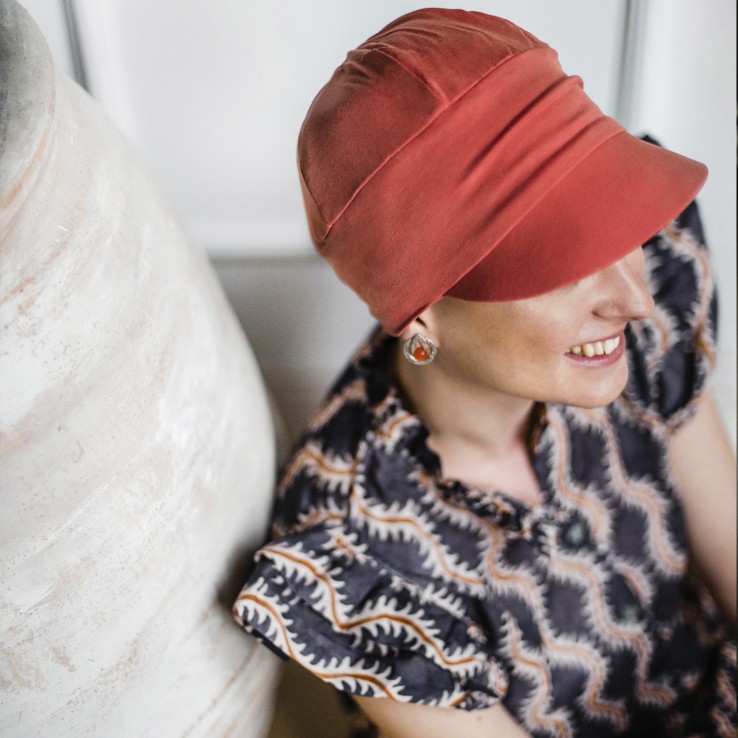 La gorra oncológica Capri de Carebell Headwear está confeccionada en fibra de bambú, sin costuras interiores