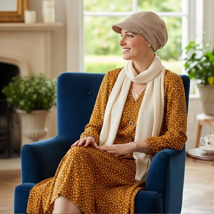 La Gorra Oncológica Capri de Carebell Headwear ha sido diseñada para cuidar el cuero cabelludo sensible, proporcionando bienestar, protección y una sensación agradable durante todo el día.