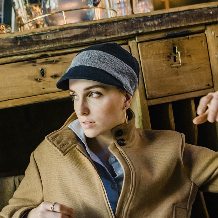 La Creta Glitter Duo Navy de Aderans Headwear es una gorra oncológica confeccionada para quienes enfrentan procesos como la quimioterapia, radioterapia o viven con alopecia, y buscan una prenda que combine funcionalidad, suavidad y un toque de estilo.