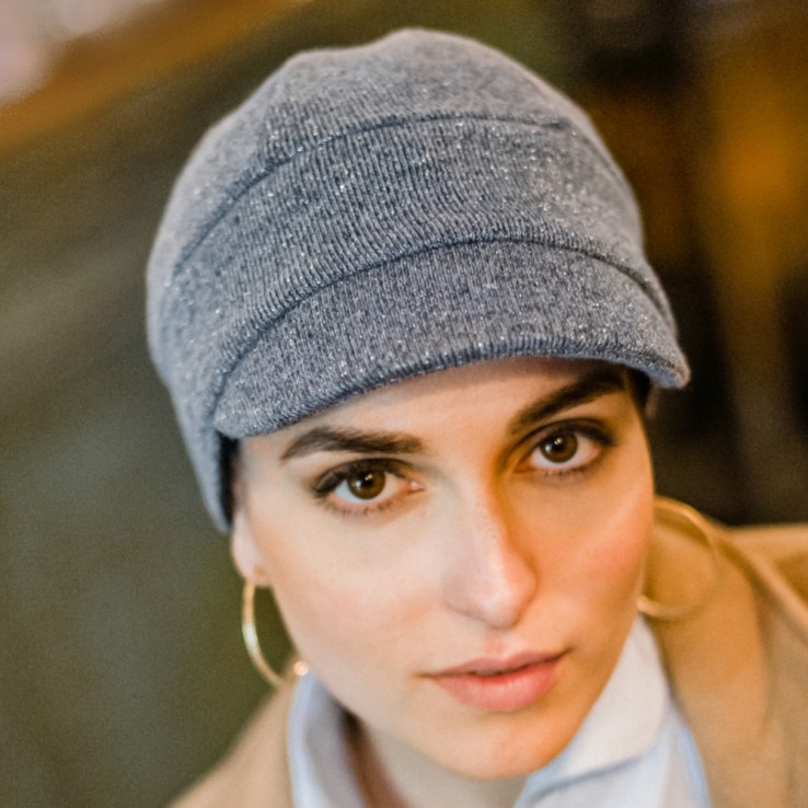 Gorra oncológica CRETA GLITTER BLUE de ADERANS HEADWEAR.