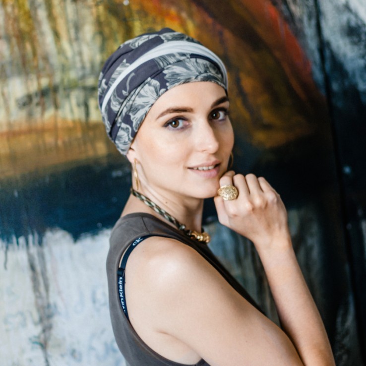 El turbante COSY POPPY GREY de Aderans Headwear es una opción elegante, ligera y muy cómoda.