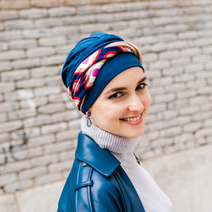 COSY OCHENTA’S de Aderans es un turbante oncológico hecho a mano en España.