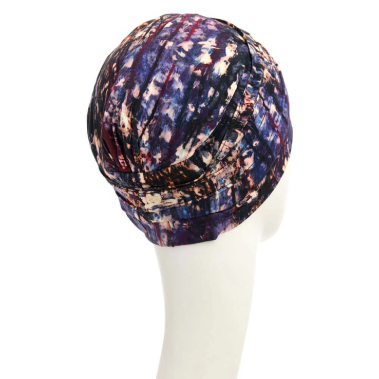 El Turbante Oncológico HocYoga Tie Dye Dusk de Christine Headwear combina comodidad, diseño funcional y un estampado artístico que equilibra suavidad y carácter. Es la opción perfecta para mujeres que buscan una solución estilosa, rápida y segura para la caída del cabello por alopecia o tratamientos oncológicos.
