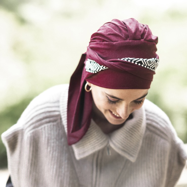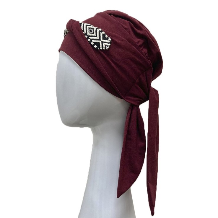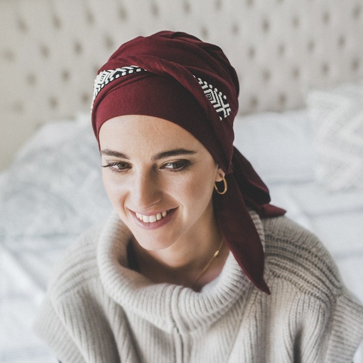 Turbante Oncológico Smooth Ikat Burdeos – Carebell Headwear