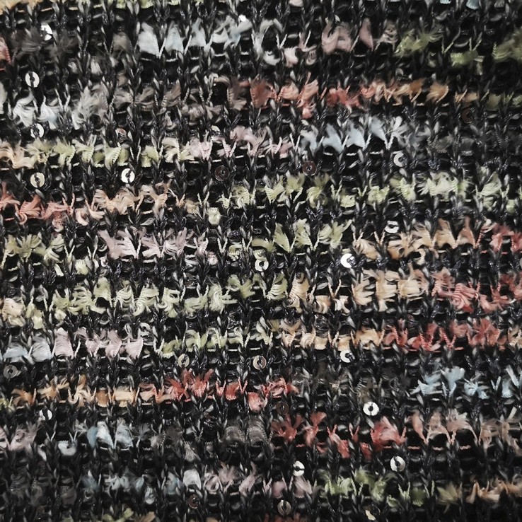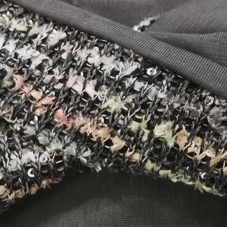 Su diseño es fácil de colocar, ya que podemos encontrar la base (gris noche), junto con una banda semi-unida en la parte frontal para dar volumen (en gris noche y un bonito tejido de tweed en tonos pastel: rosa, verde y azules). Y dos cintas largas cosidas en la parte trasera, para que las puedes atar como más te guste.