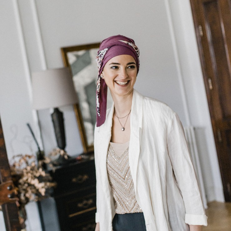 El modelo SMOOTH, es un turbante oncológico de muy fácil colocación, ya que viene completamente preformado.