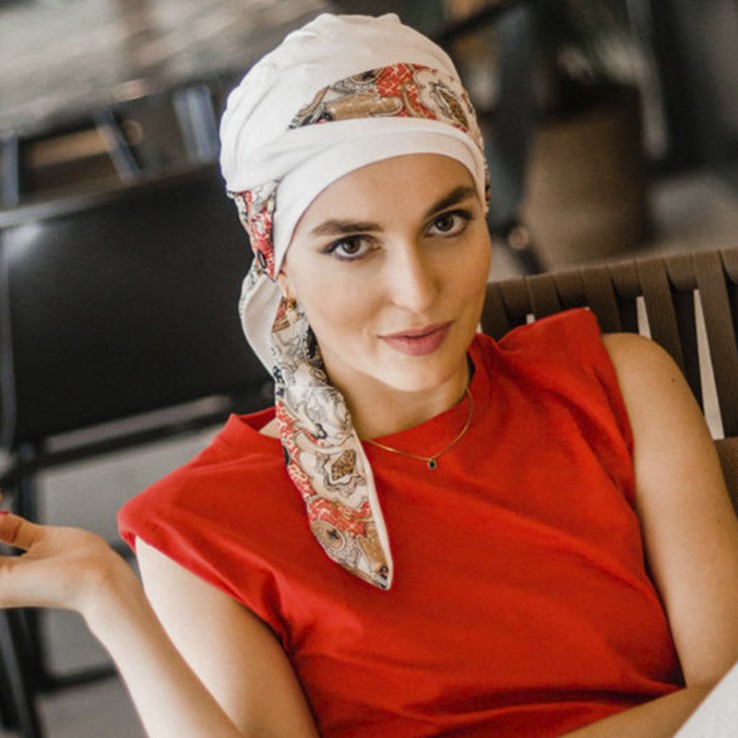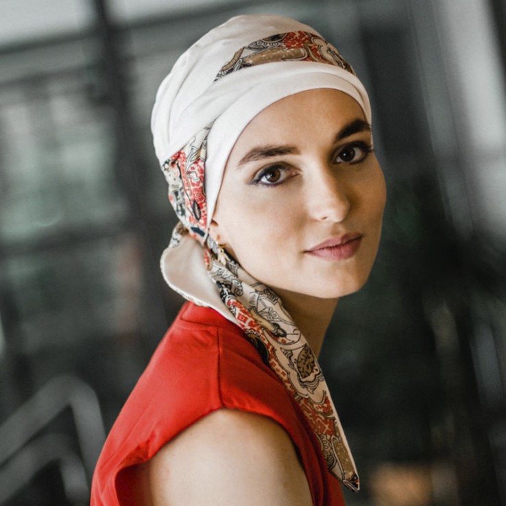 El turbante oncológico SMART PALERMO es específico para casos de alopecia (areata, difusa, androgenética...) o pérdida de cabello por motivo de tratamientos oncológicos como quimioterapia/radioterapia.