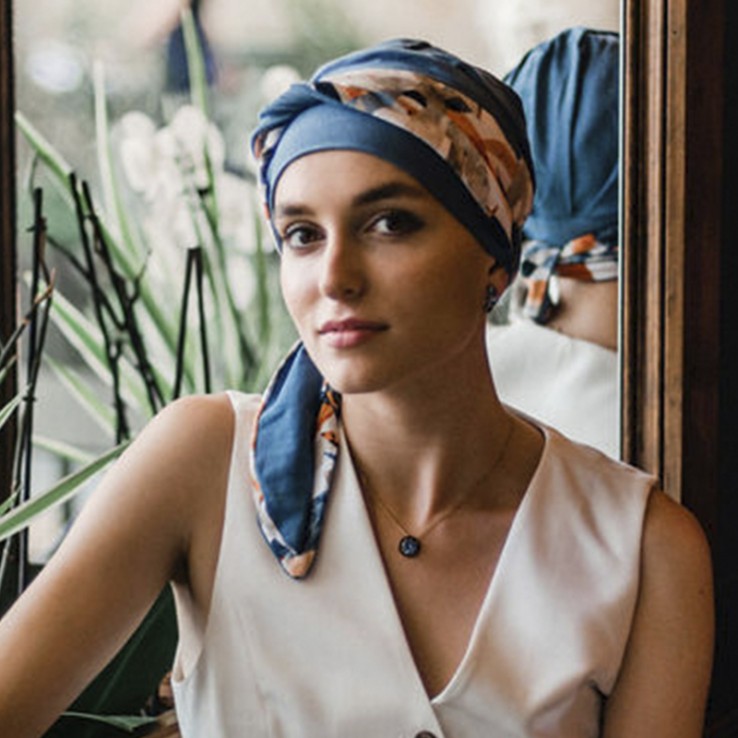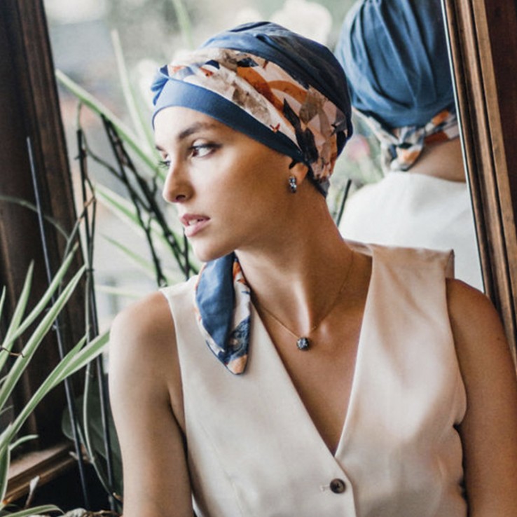 SMART ZAHARA es un pañuelo oncológico específico para casos de pérdida de cabello, ya sea por alopecia o por tratamientos oncológicos como la quimioterapia/radioterapia.