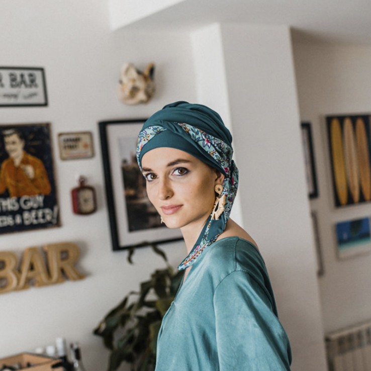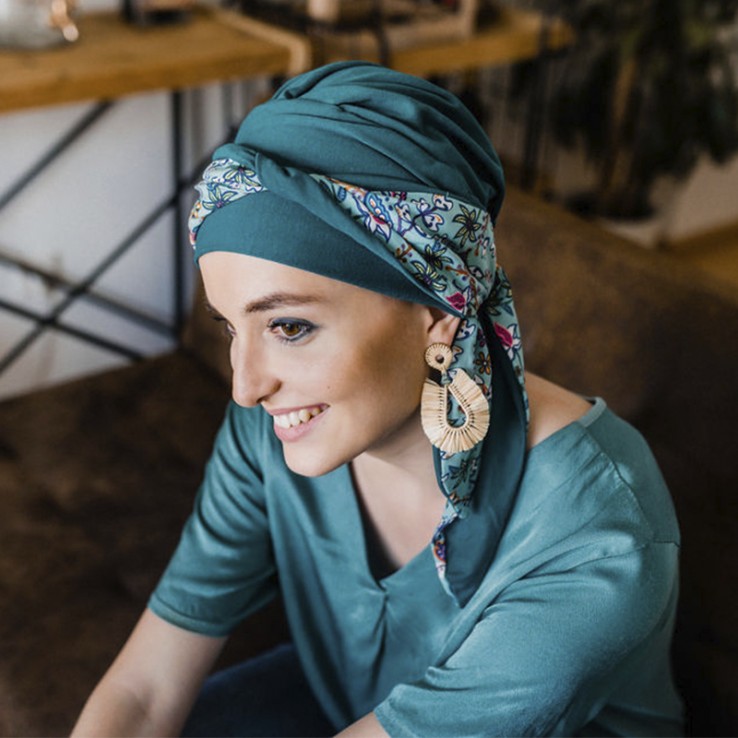 El turbante oncológico SMART HAWAII es específico para casos de alopecia (areata, difusa, androgenética...) o pérdida de cabello a causa de tratamientos oncológicos como la quimioterapia/radioterapia.