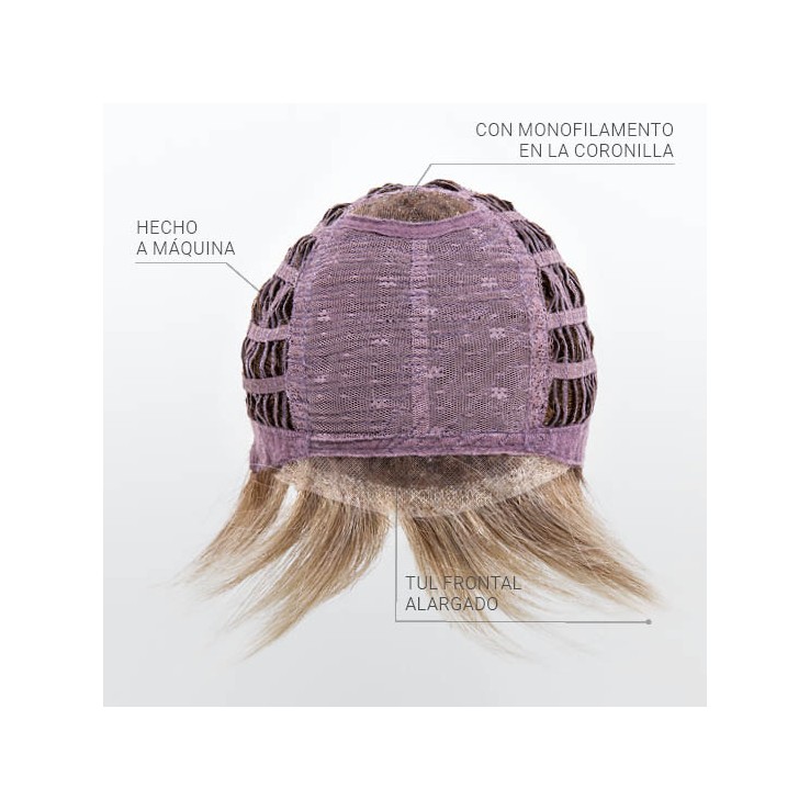 Es una peluca sintética confeccionada con microfibra de alta temperatura. Podrás aplicar el secador a temperatura media e incluso marcarla con la plancha a 160º.
