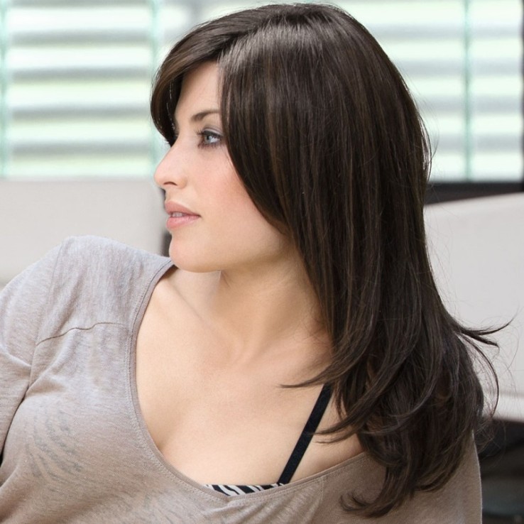 Es una melena larga y lisa sin flequillo, ligeramente capeada en las puntas y el contorno.
