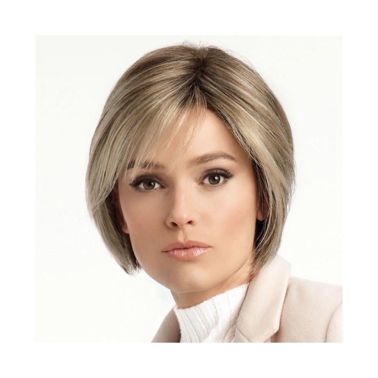 El modelo CAPE MONO es un cabello corto pero alargado en zonas donde más favorece. Su estilismo en capas degradadas le dan movimiento y naturalidad al mismo tiempo. La zona de la raya está confeccionada con monofilamento y tul frontal.