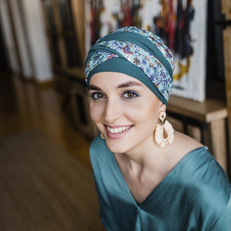 El FANCY HAWAII es un turbante específico para casos de pérdida de cabello, ya sea por alopecia o por tratamientos oncológicos como la quimioterapia/radioterapia.