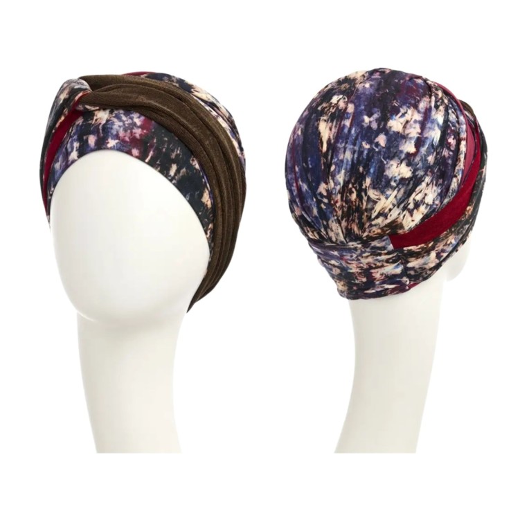 El turbante oncológico HocNoya Tie Dye Dusk de Christine Headwear combina estilo, comodidad y funcionalidad. Confeccionado en